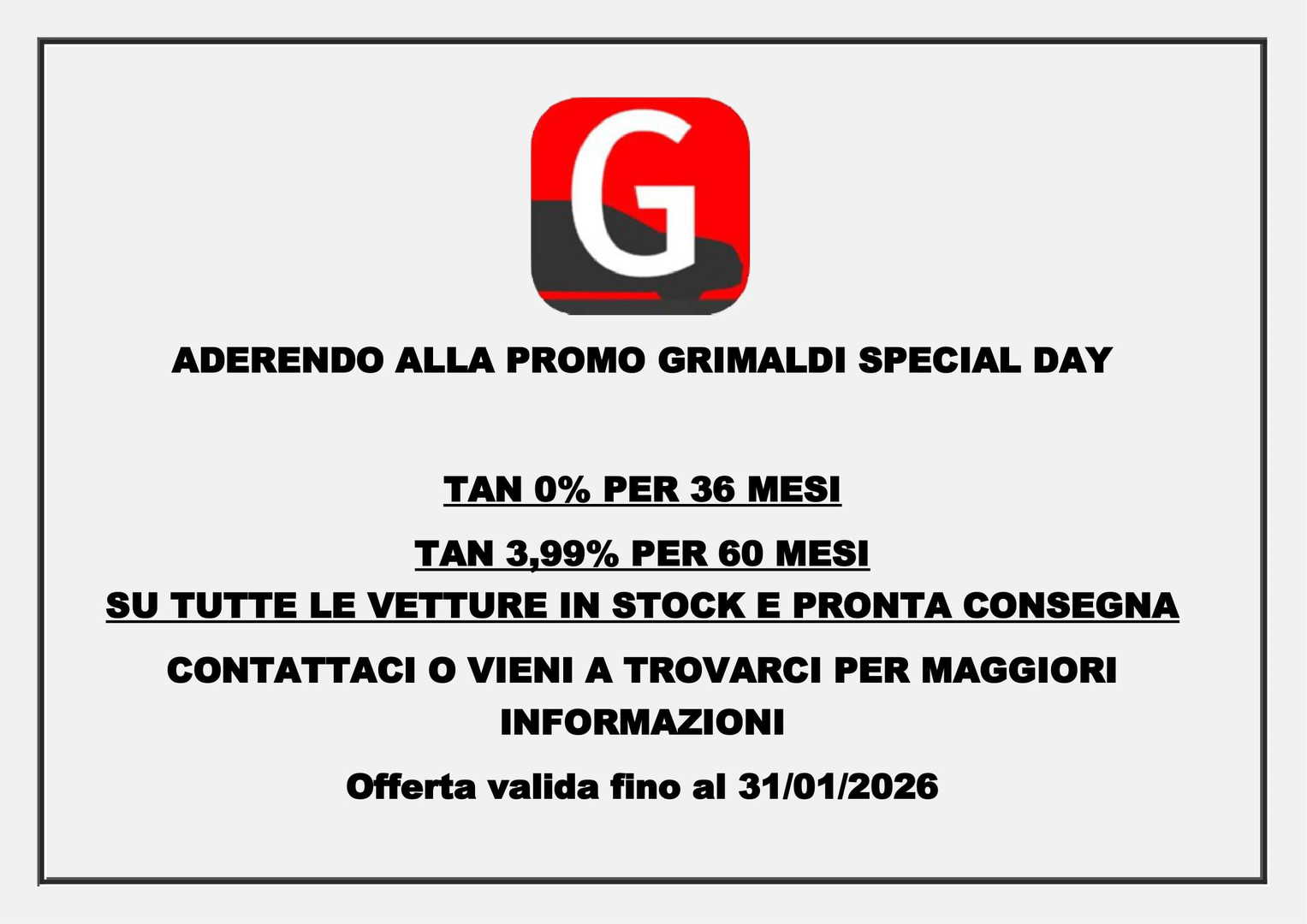 Il titolare del trattamento è Grimaldi Auto Spa con sede in Via Monte Grappa, 15, 27029 Vigevano (PV)